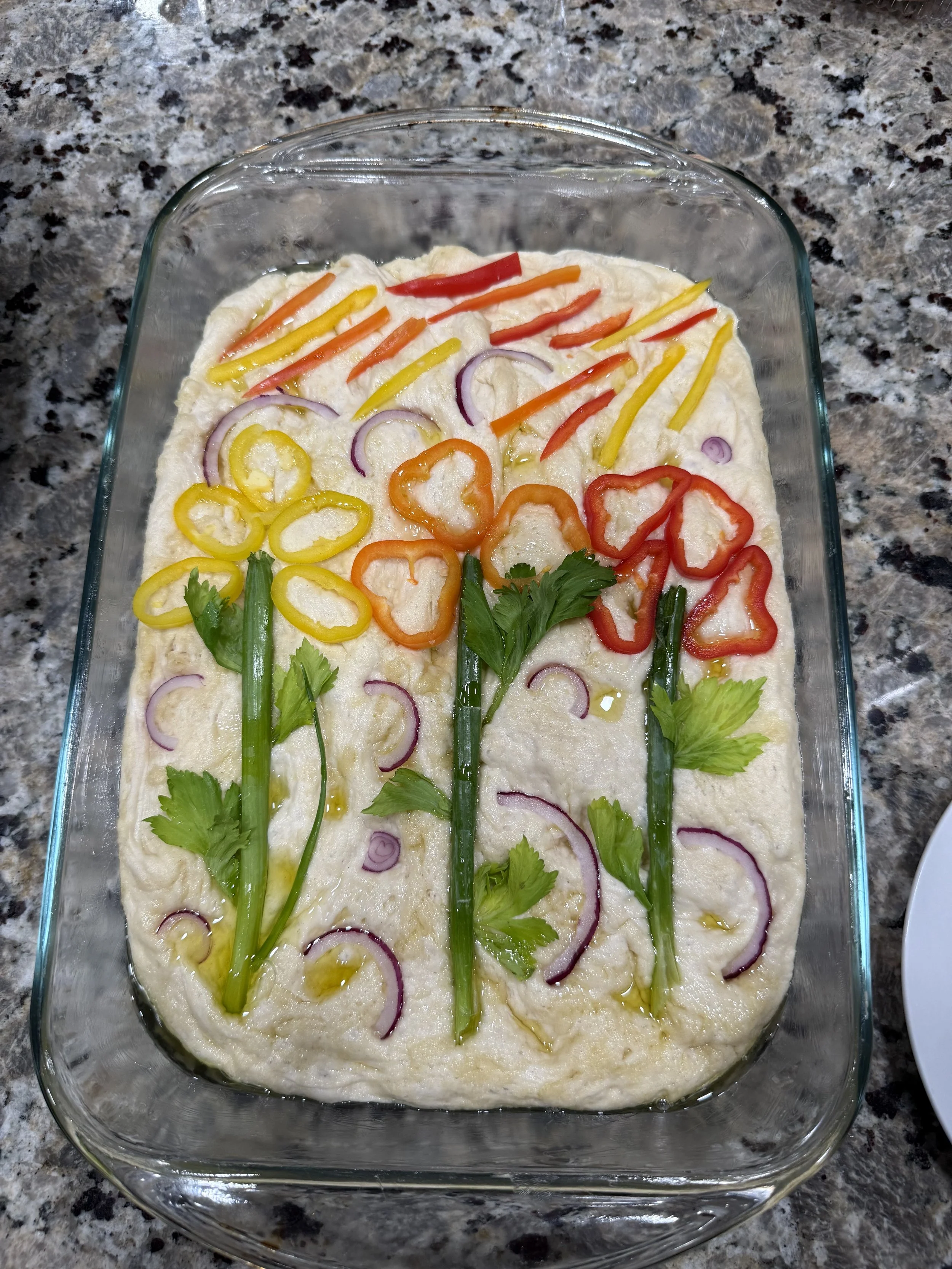 As soon as I got home I started baking a pound cake and prepping dough for focaccia bread. Between baking projects I also shampoo’d my daughter's hair and blew it out.
