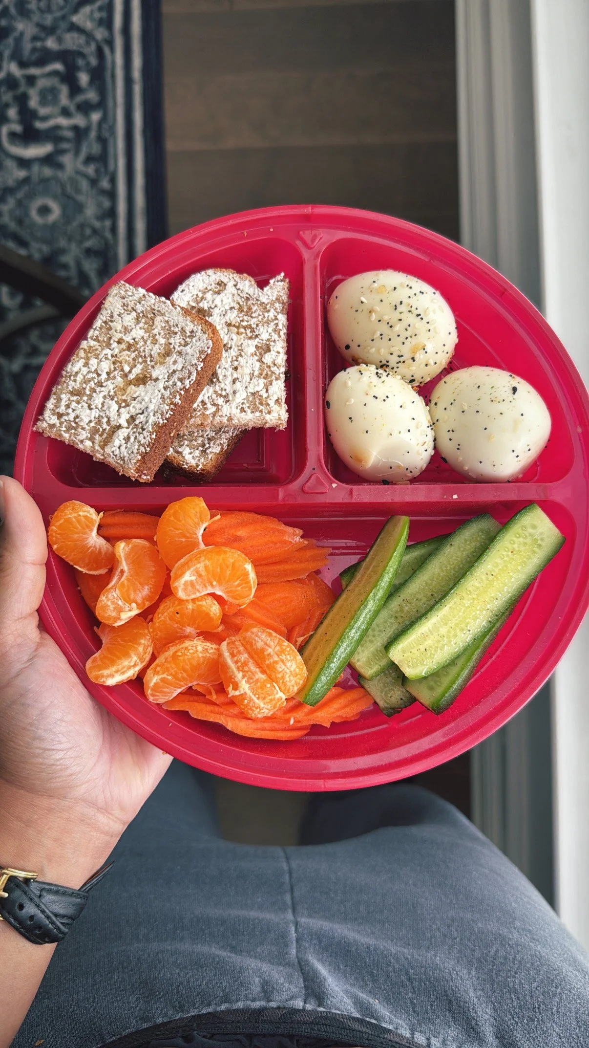 On the podcast I talked about offering these charcuterie/crudité bento boxes to keep everyone from grazing on hot cheetos all Summer. Everyone gets to build their own box. Our goal is to eat one of these each day. You can eat it as a meal or whenever you feel like you need a snack. They get some extra fruits and veggies in and I don’t have nutrition-guilt.